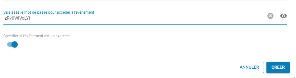 3) L'évènement est créé, par défaut, dans le cadre d'un exercice. Dans le cas d'une crise réelle, le switch doit être basculé.