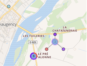 Lorsqu'ils sont regroupés, les points de prélèvement sont encore consultables de façon unitaire. Pour cela, il faut cliquer sur le donut.