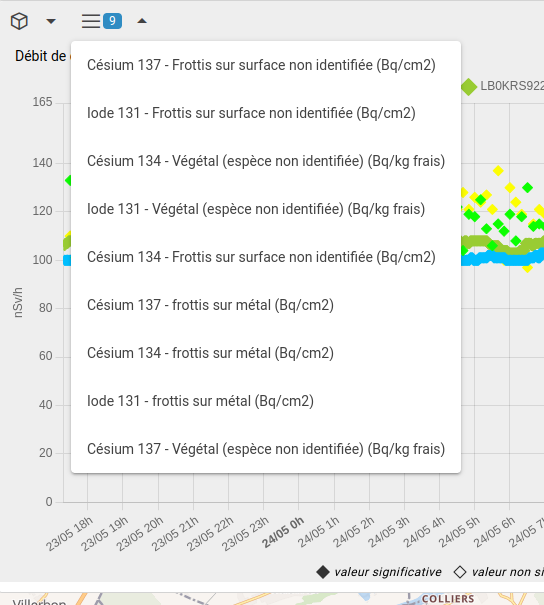 Après paramétrage de la profondeur temporelle (dan le menu principal), l'utilisateur accède à ces deux modes de consultation par simple clic sur un point de prélèvement ou par sélection au lasso de plusieurs points.